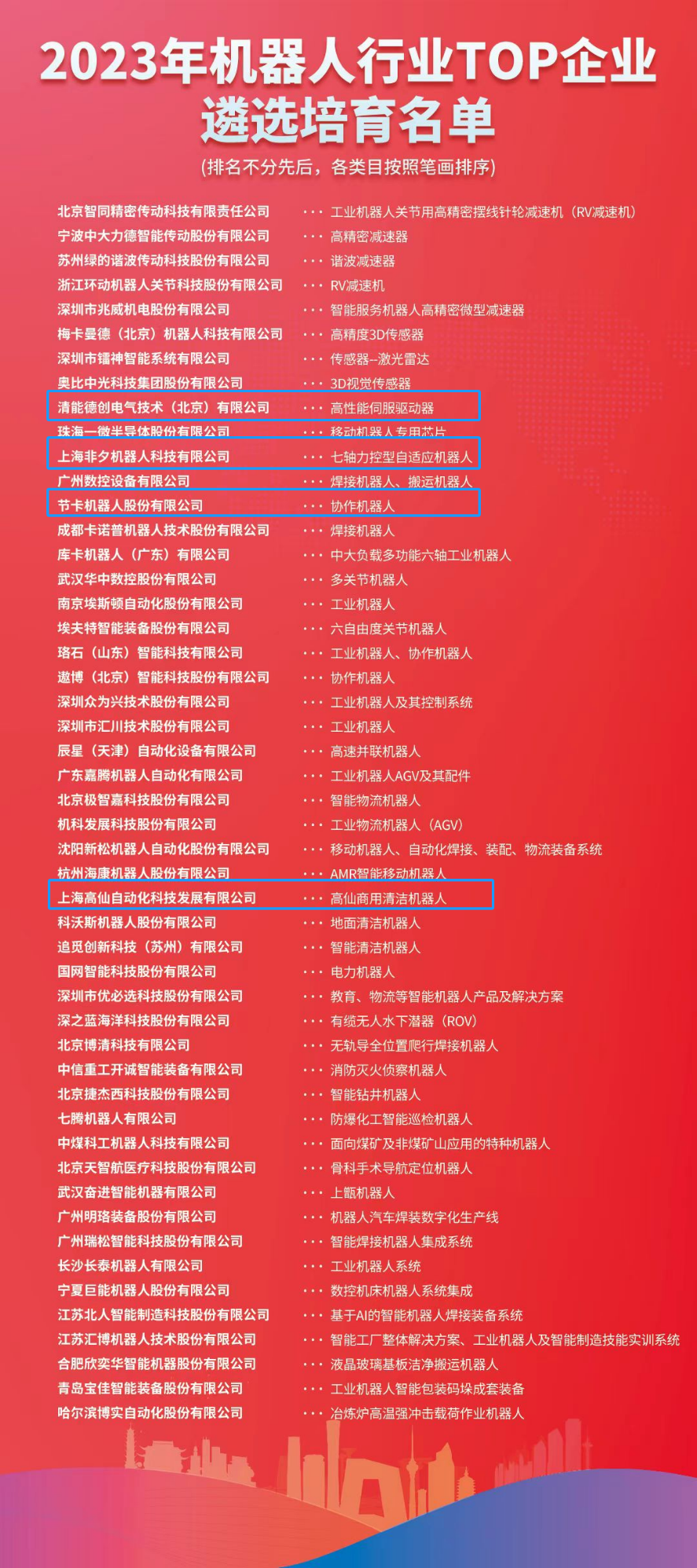 2023年10月,中國機械工業聯合會機器人分會會同全國22家省市行業協會共同開展了機器人行業 TOP 企業遴選培育工作。旨在推動機器人企業加強專業化差異化發展,鍛長板補短板,不斷培育和壯大具有生態主導力和核心競爭力的機器人優質企業,遴選出一批創新能力強、在供應鏈發揮主導作用、在賦能經濟社會數字化轉型和支撐人民美好生活取得較好成果的企業,形成中國機器人行業TOP企業矩陣。
