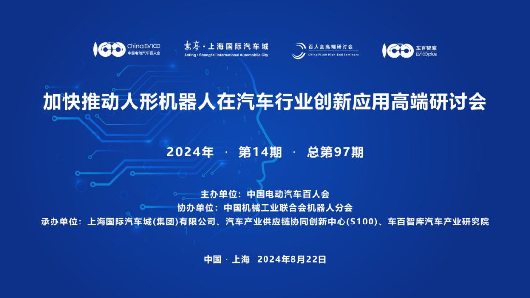 8月22日,由中國電動汽車百人會主辦,中國機械工業聯合會機器人分會協辦,上海國際汽車城(集團)有限公司、汽車產業供應鏈協同創新中心(S100)、車百智庫汽車產業jiuyou.com九游共同承辦的“加快推動人形機器人在汽車行業創新應用”高端研討會,暨百人會2024年第14期(總第97期)高端研討會,在上海嘉定順利召開。研討會由百人會副秘書長師建華主持。