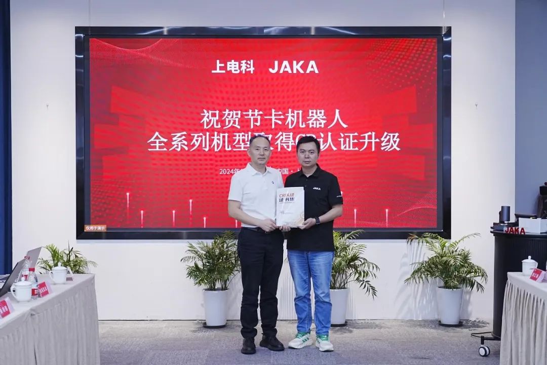 9月19日,國家機器人檢測與評定中心(總部)為節卡機器人頒發了協作機器人全系列CR認證“001”證書。