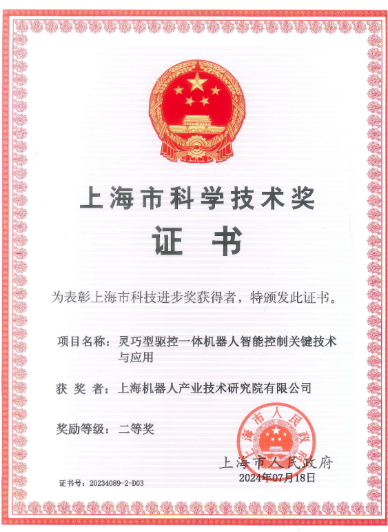參與《靈巧型驅(qū)控一體機(jī)器人智能控制關(guān)鍵技術(shù)與應(yīng)用》項(xiàng)目,獲得上海市科技進(jìn)步獎(jiǎng)二等獎(jiǎng)。