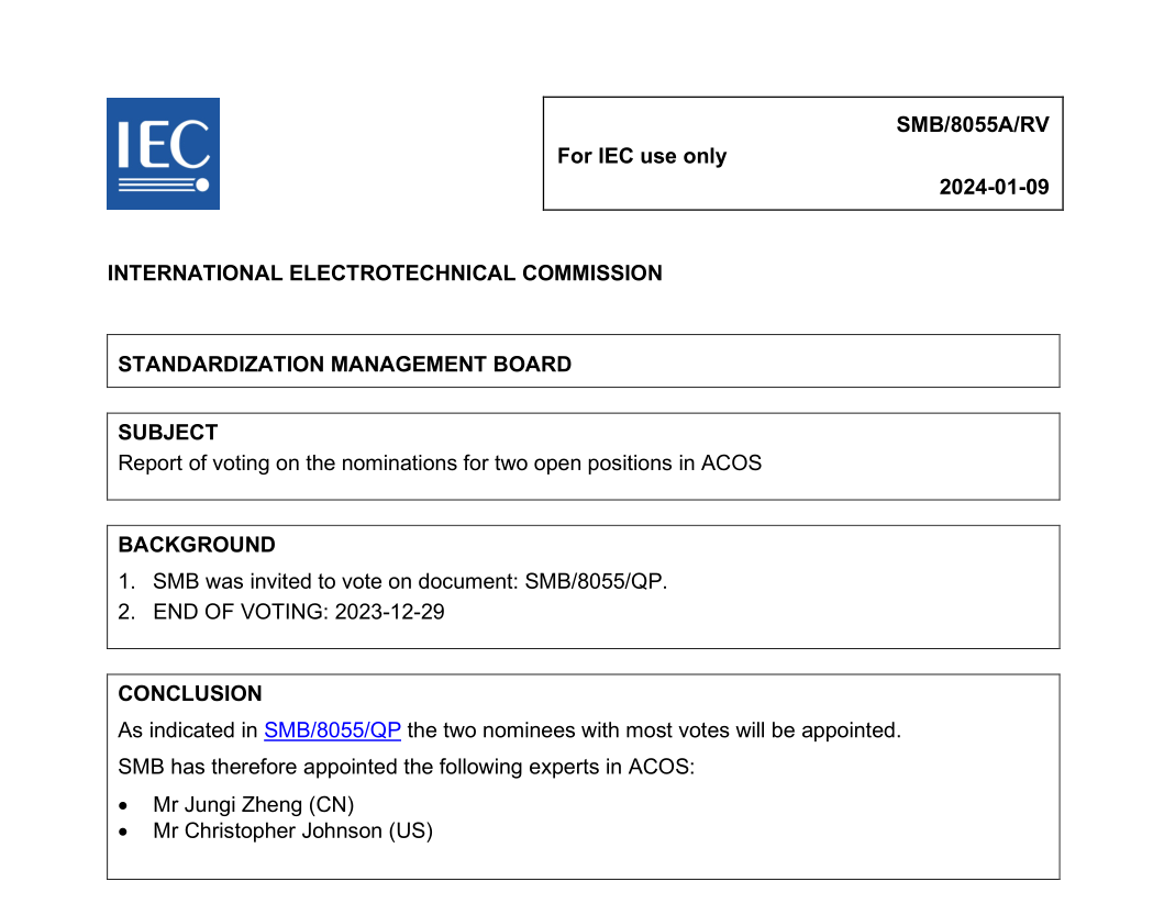 牽頭制定IEC 63281-3-2:2024國際標(biāo)準(zhǔn)發(fā)布,并獲2024國際電工標(biāo)準(zhǔn)化1906獎(jiǎng)。