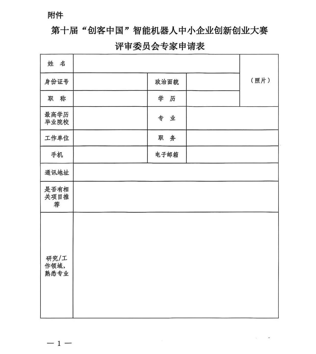 附件:第十屆“創客中國”智能機器人中小企業創新創業大賽評審委員會專家申請表.docx