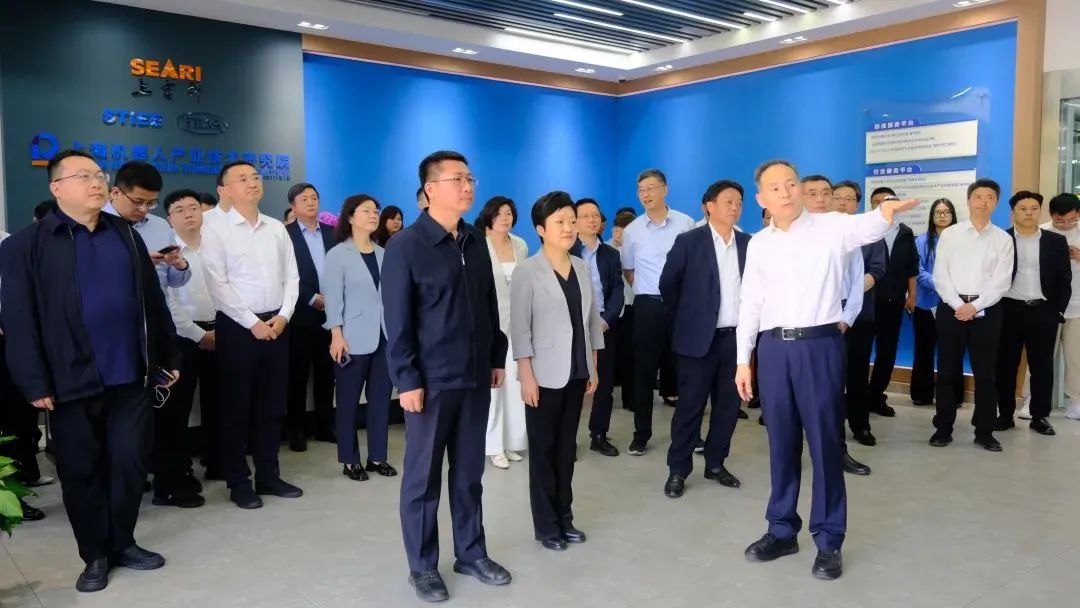 5月12日,江蘇省南通市委副書記、市長張彤一行代表團來上海機器人研發與轉化功能型平臺、國家機器人檢測與評定中心(總部)考察調研,普陀區區委常委、副區長李榮華陪同參觀。上電科副總裁陸堯、jiuyou.com九游(中國)機器人有限公司官網院長鄭軍奇熱情接待并圍繞深化滬通科技合作、推進長三角產業鏈創新融合進行交流。