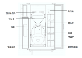 自動落料、自動翻炒、自動清洗、油煙處理數據通訊、安全預警、可選的調料方式