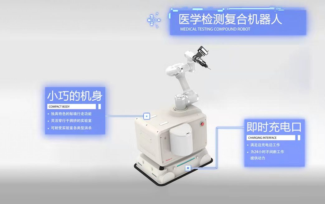 醫(yī)學(xué)檢測復(fù)合機器人以實際的檢測設(shè)備為依托,通過自主開發(fā)中控系統(tǒng),在實驗室內(nèi)進行模塊化搭建,柔性連接各類儀器設(shè)備。