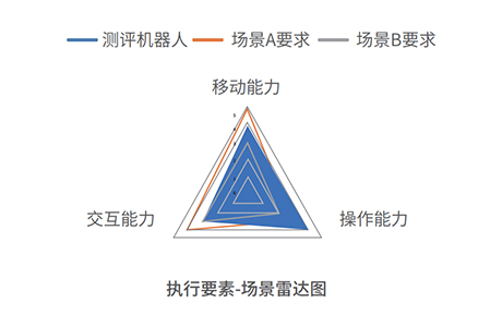 機器人智能化水平評價,從機器人智能化的感知、認知決策、執(zhí)行各要素出發(fā),結合不同場景下的智能化水平的要求,形成智能化各要素在對應場景下的能力要求。當測評機器人各能力要素均超過 對應場景的能力要求時,即認為該測評機器人符合該場景的智能化要求。