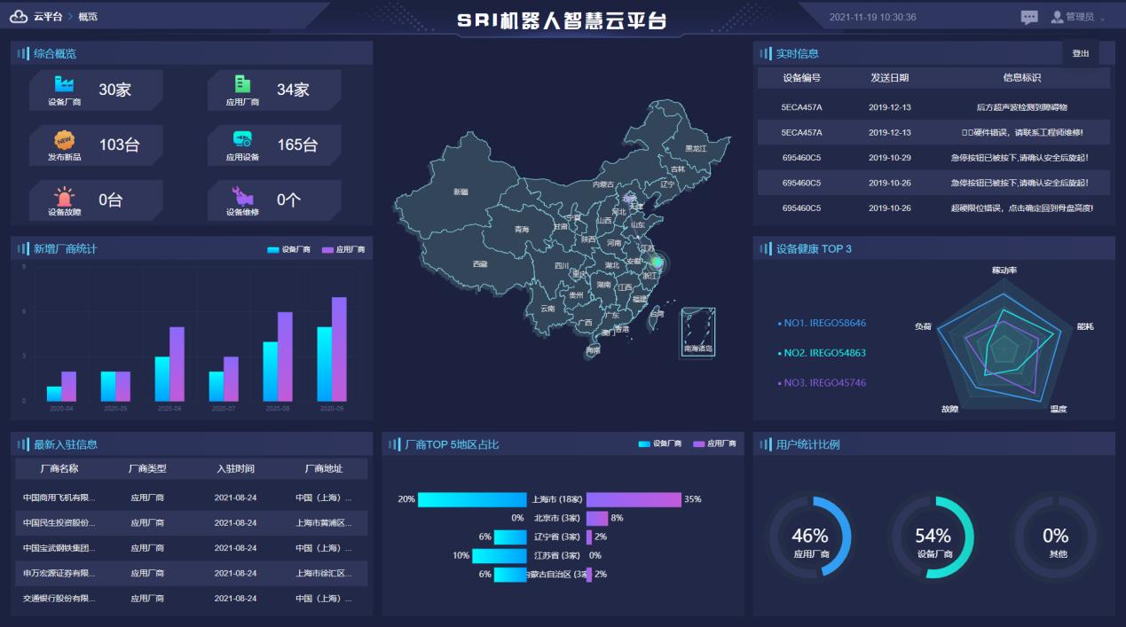 主要用于機(jī)器人設(shè)備的生產(chǎn)廠商和應(yīng)用廠商對(duì)各自生產(chǎn)與使用的設(shè)備進(jìn)行實(shí)時(shí)的監(jiān)控、分析和管理。通過云技術(shù)打破線下管理作業(yè)的繁瑣滯后等陳舊常規(guī),實(shí)現(xiàn)機(jī)器人行業(yè)設(shè)備數(shù)據(jù)的實(shí)時(shí)共享與應(yīng)用。具有如下功能: